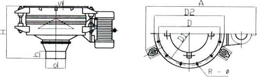 ??注:上表為平旋型(P)、斗體坡角30°(A),中心出料型振動給料斗的主要參數,另可根據實際需要提供振動方式為直線型(Z)、渦旋型(W);斗體坡角20°(B)、45°(C)、60°(D)以及邊出料(Y)等型式的振動料斗,主要參數同上。